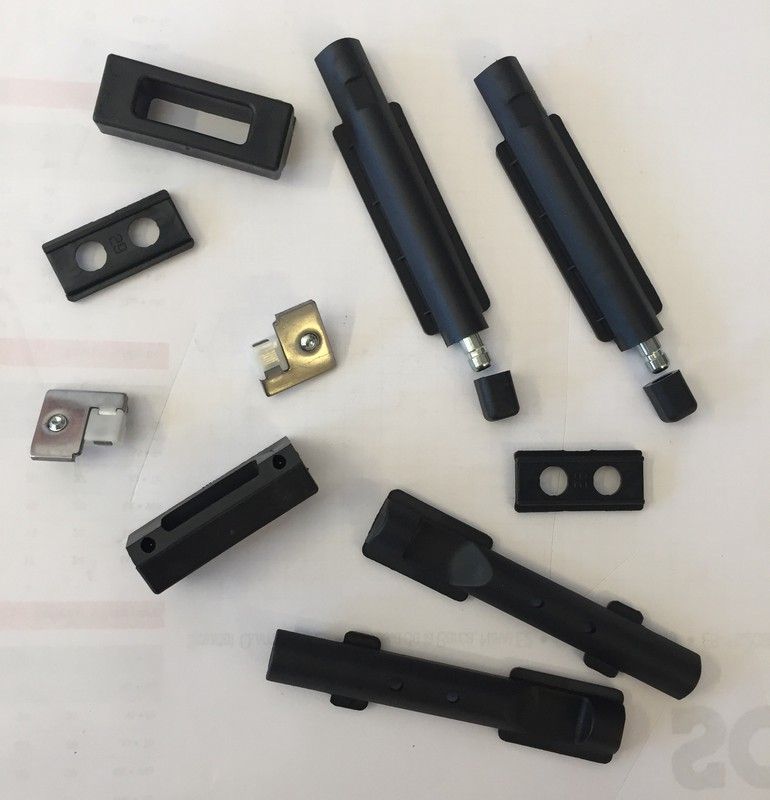 Parafusos e excêntricos de aço inoxidável.